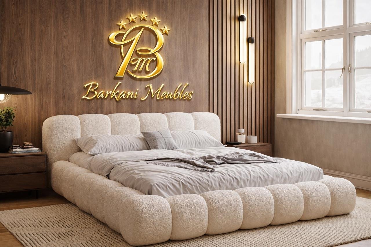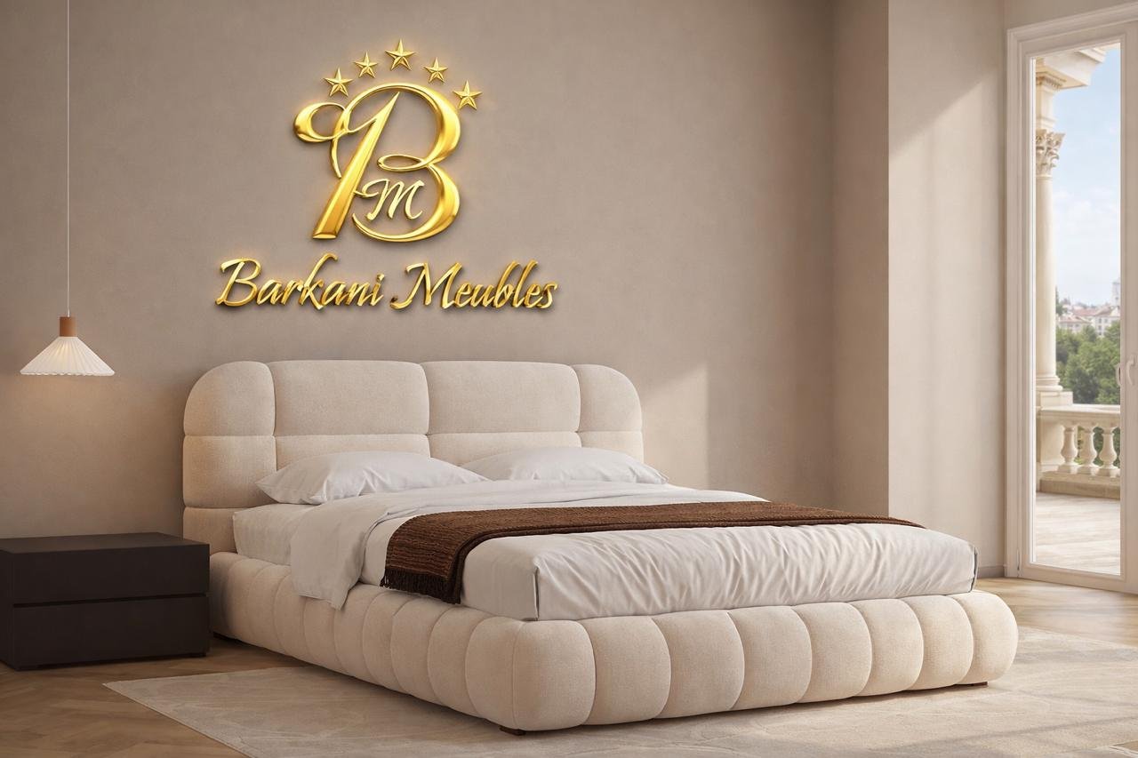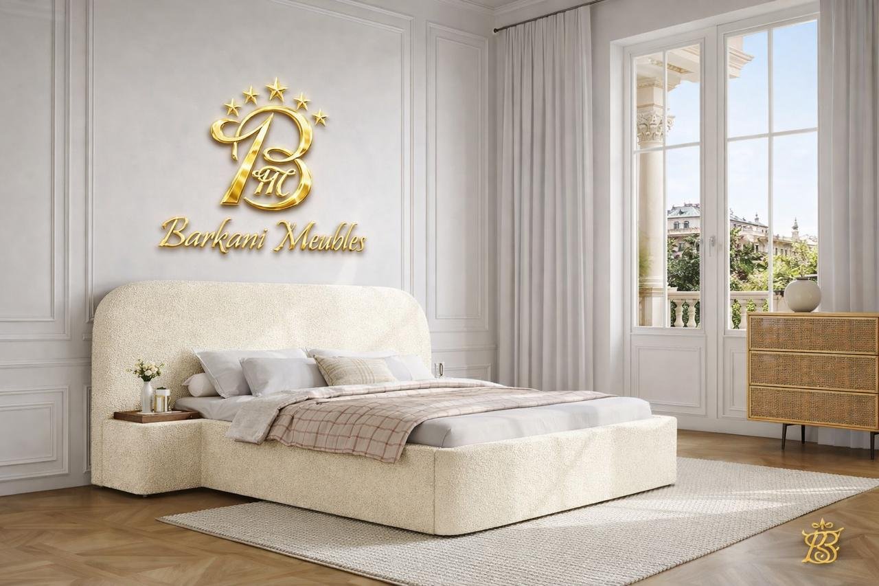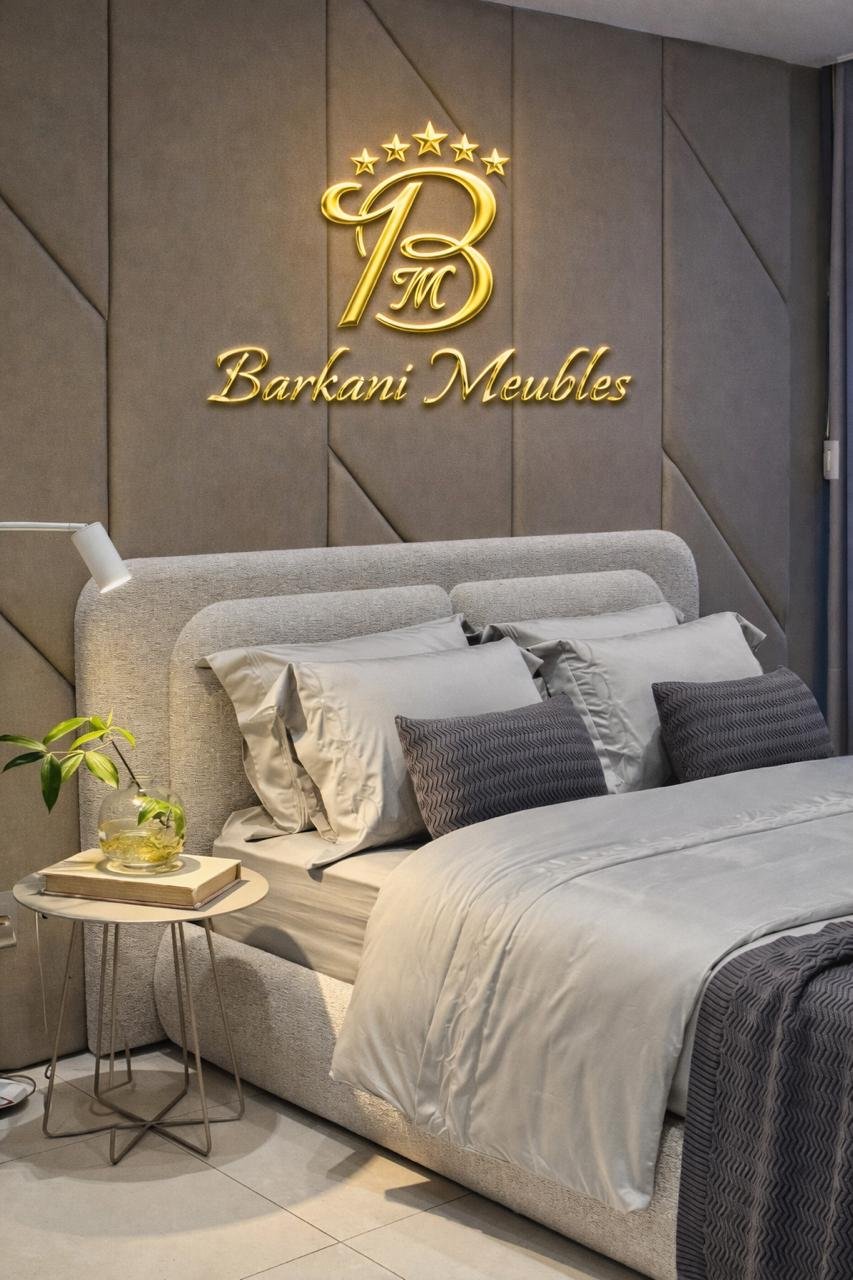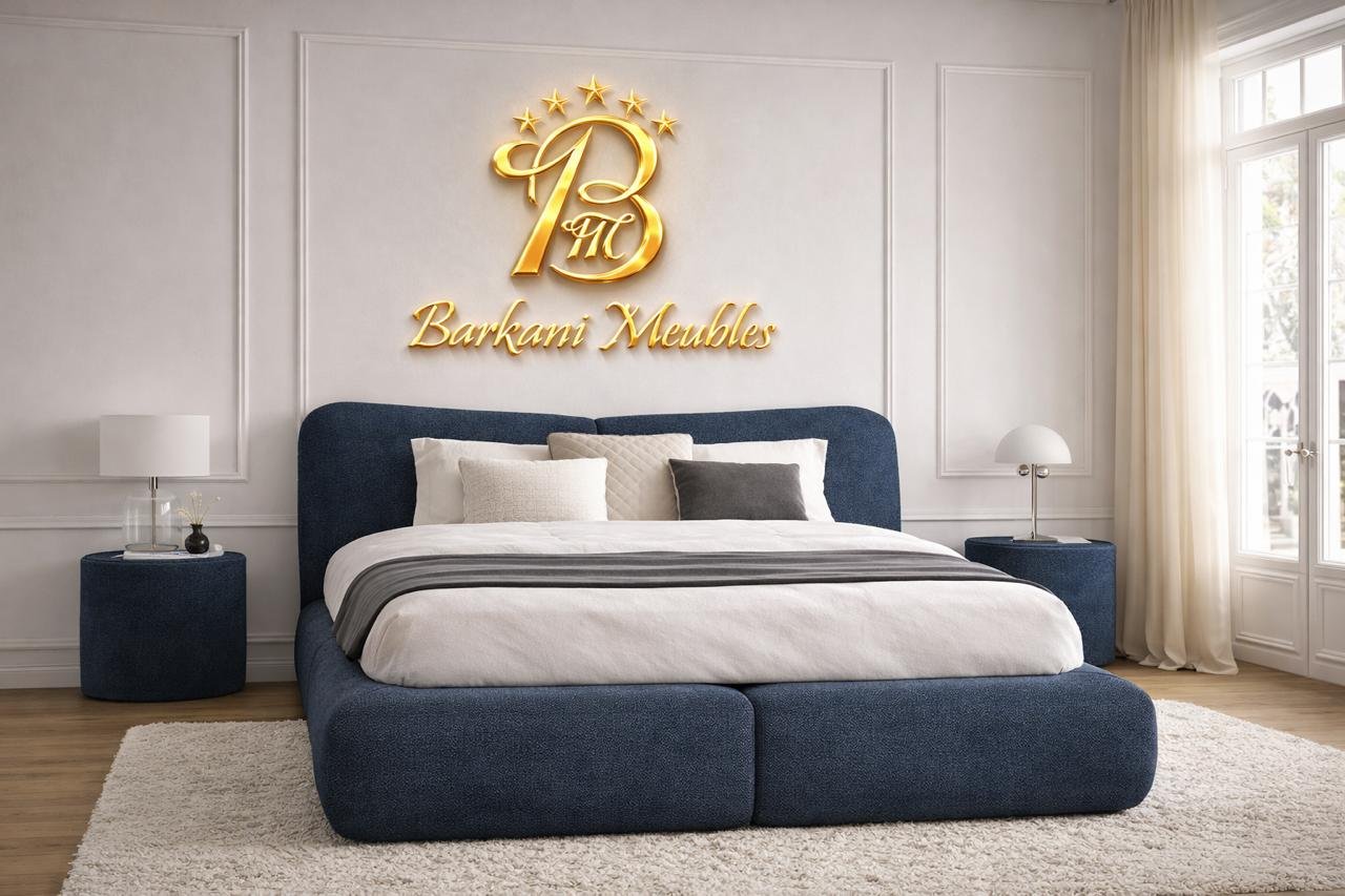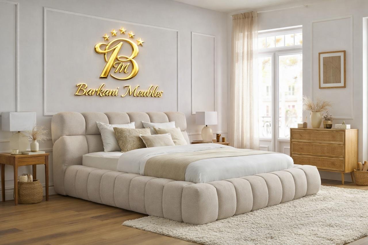 Cette chambre à coucher moderne en tissu signée Berkamed Meubles offre un parfait équilibre entre confort et design contemporain.