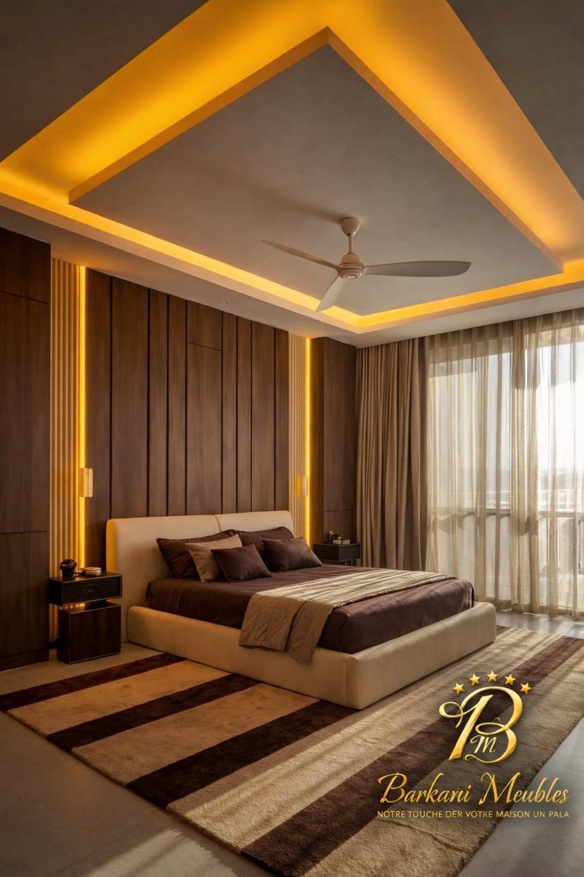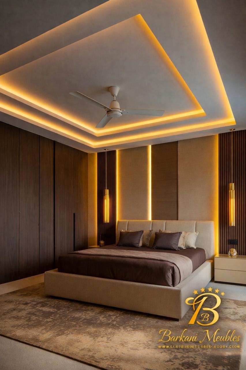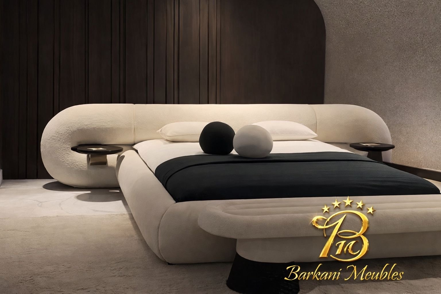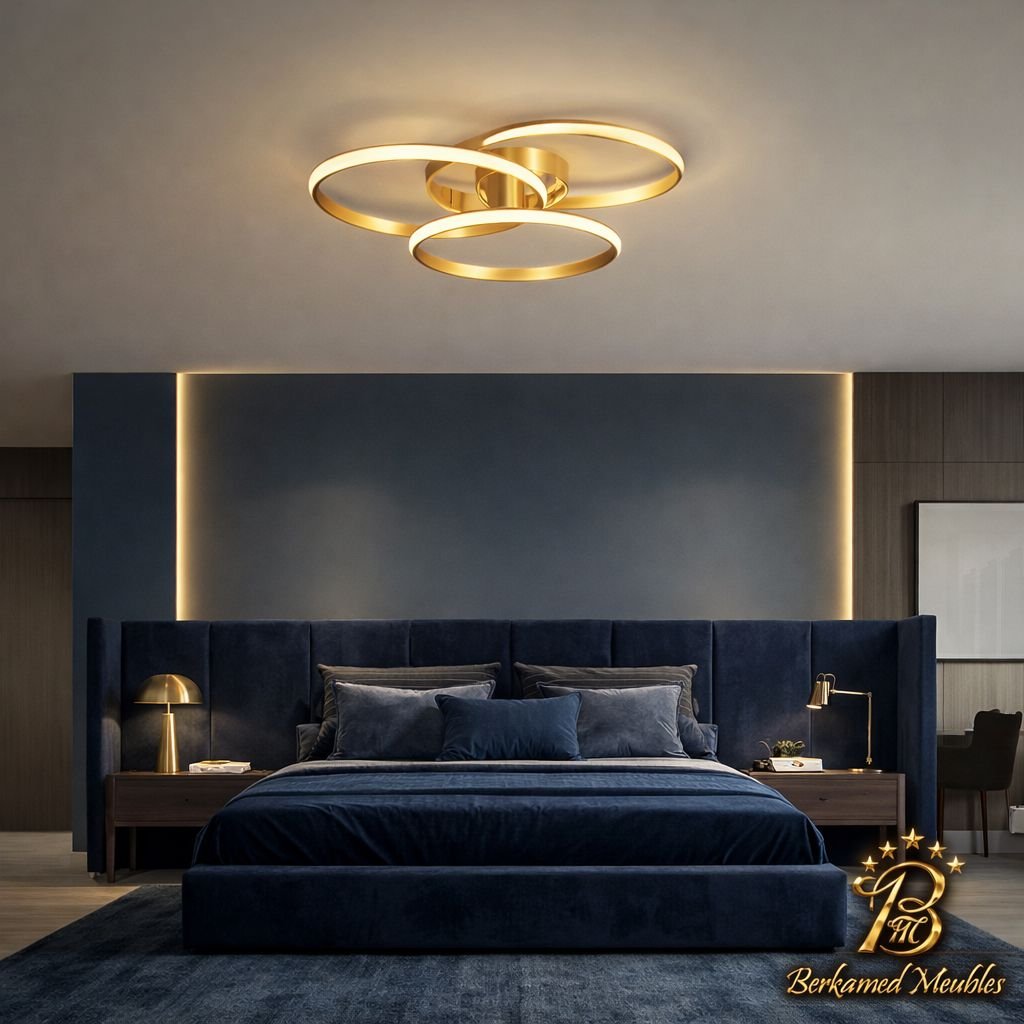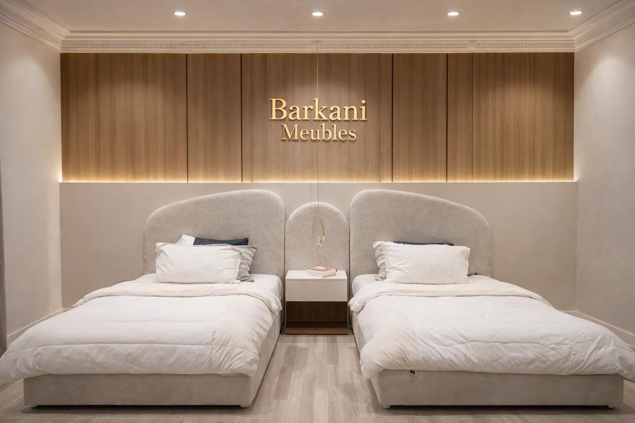 Cette chambre à coucher moderne en tissu signée Berkamed Meubles offre un parfait équilibre entre confort et design contemporain.