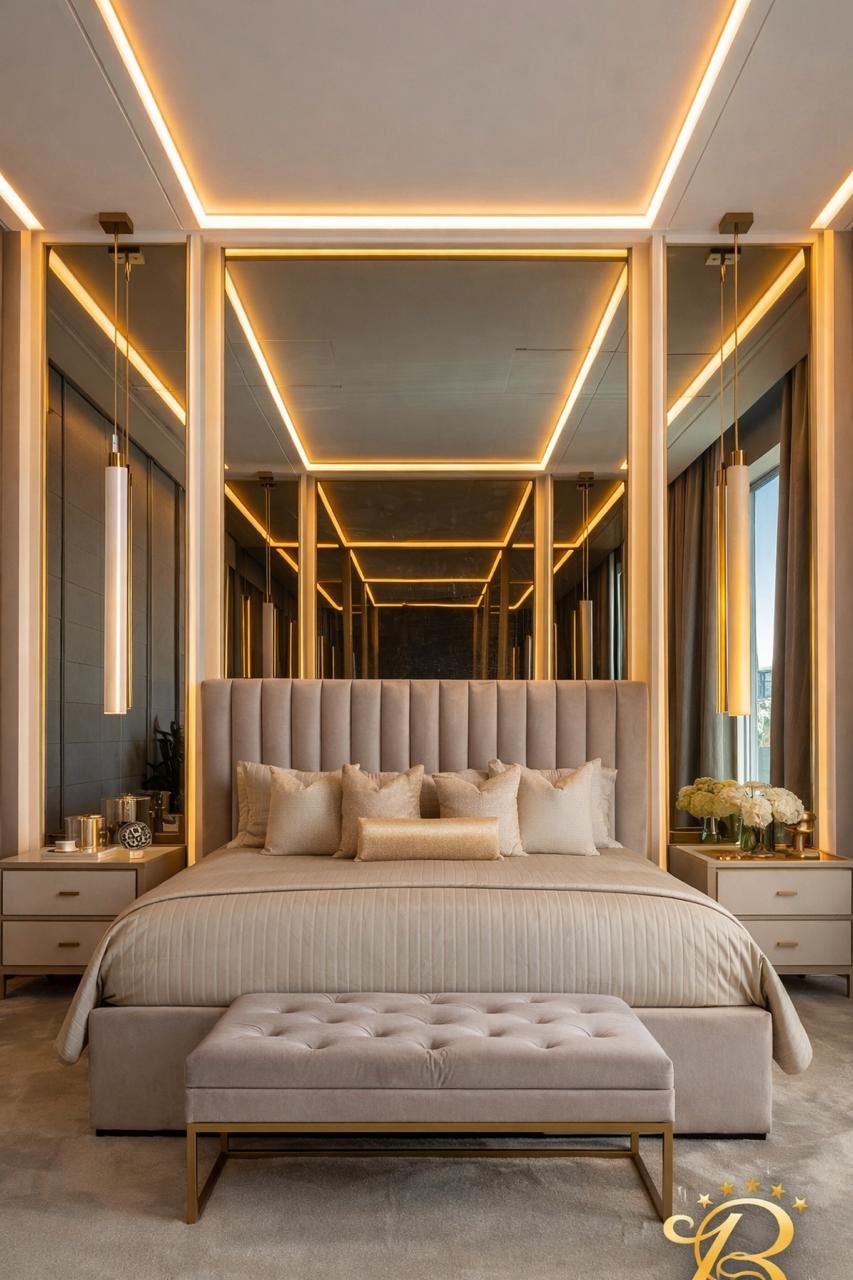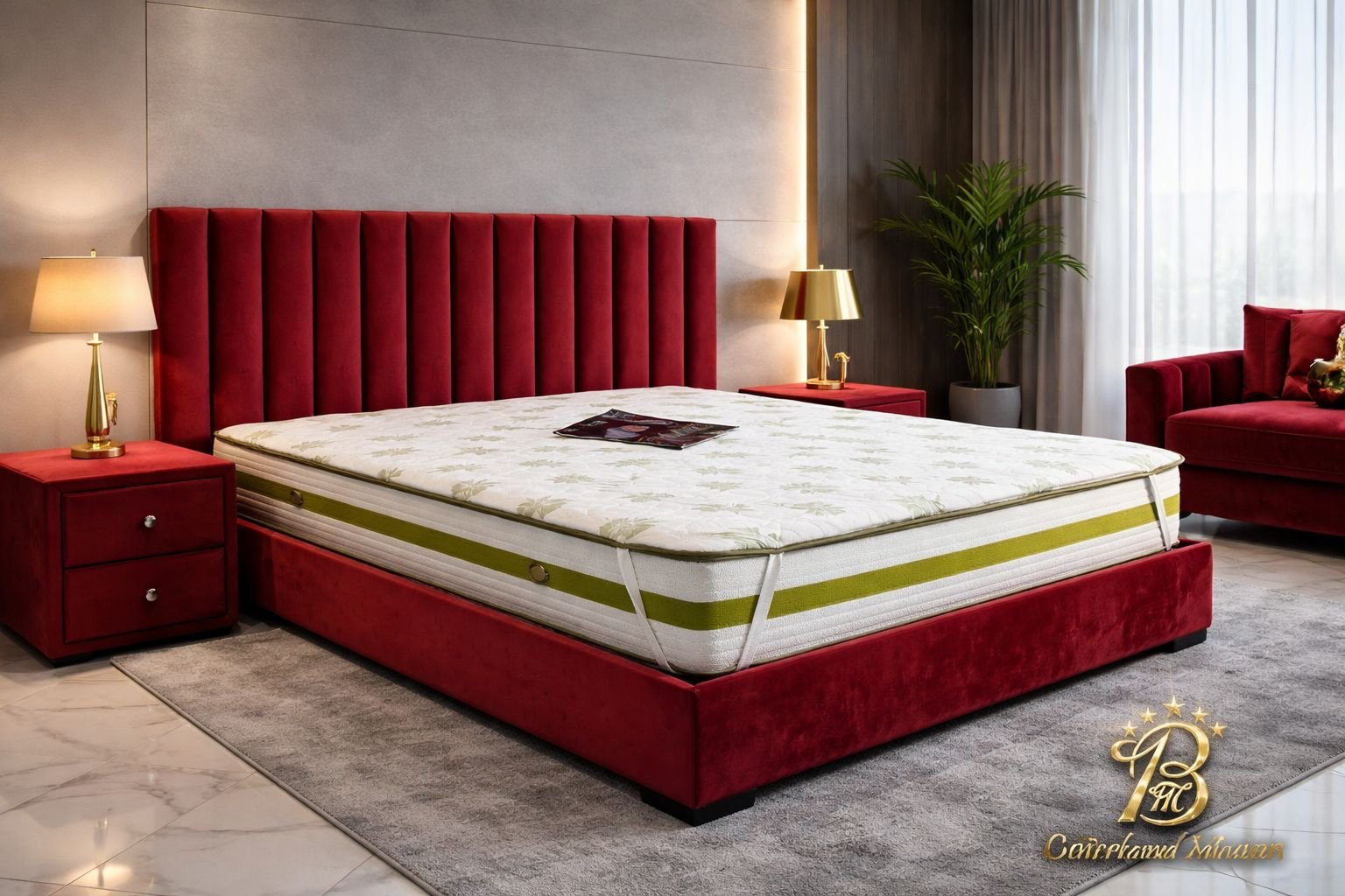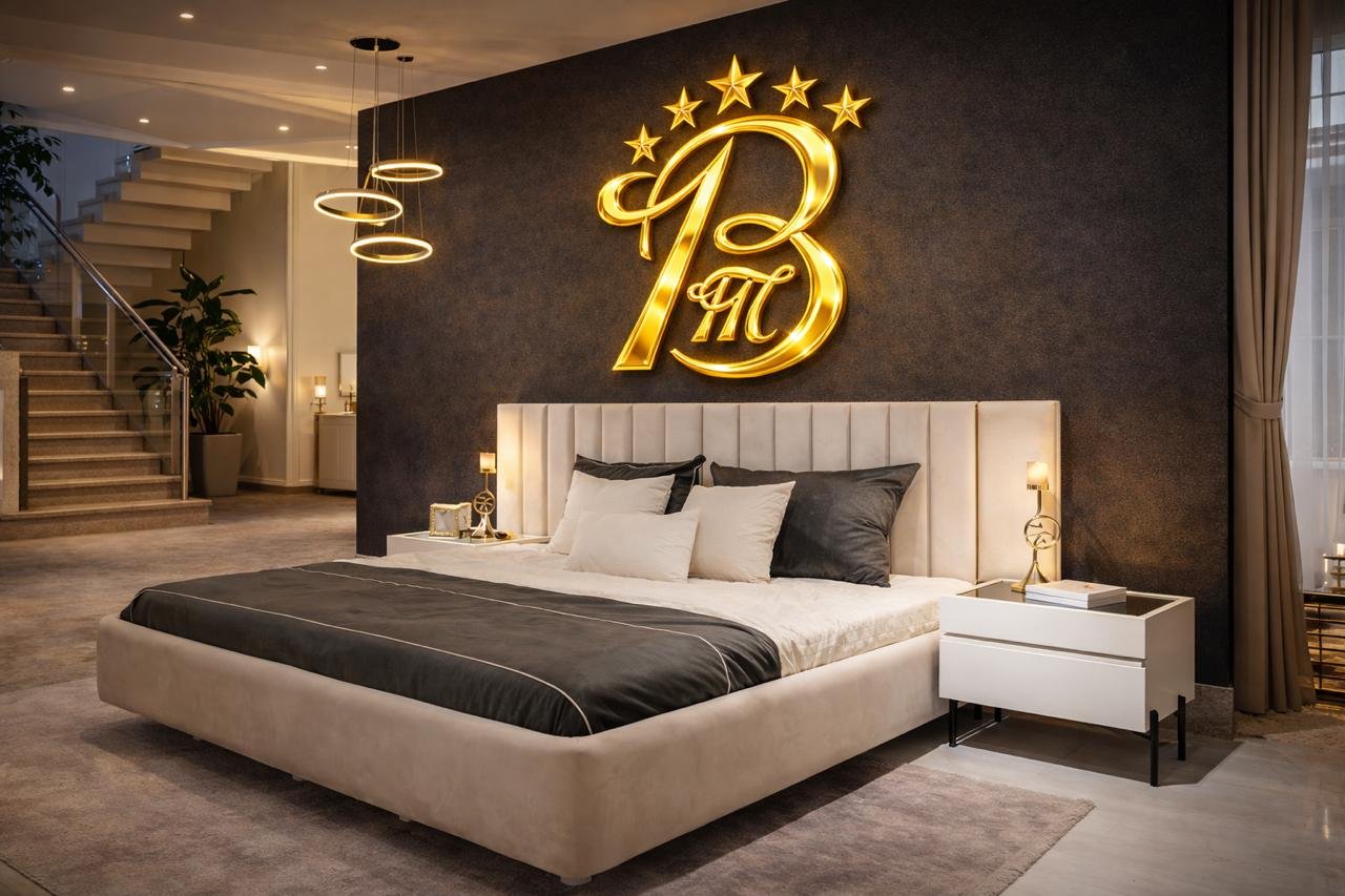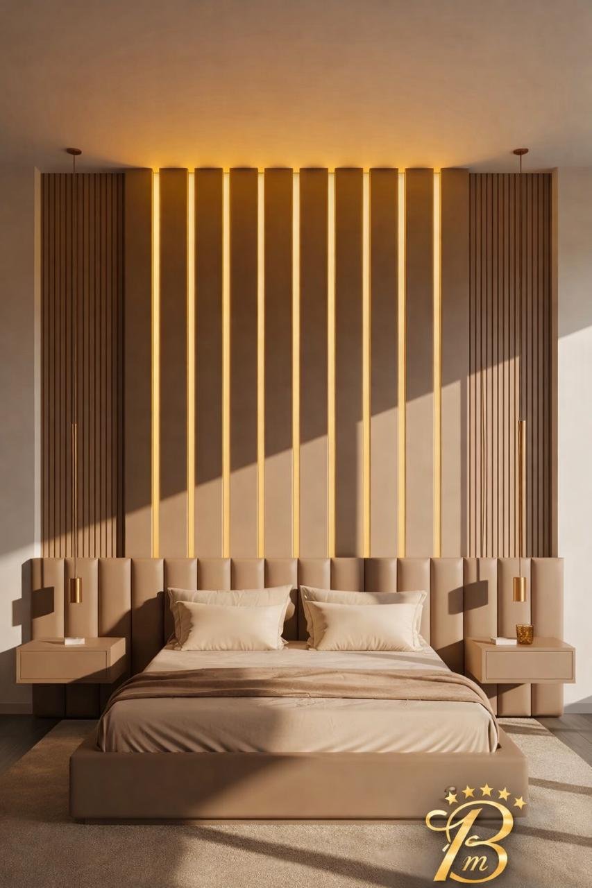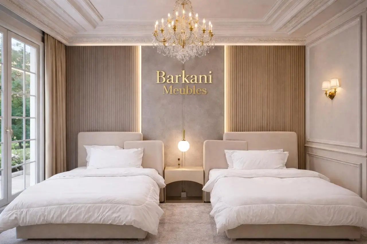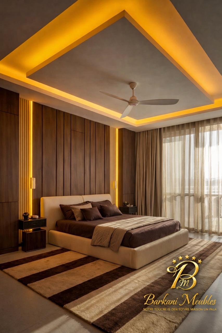 Cette chambre à coucher moderne en tissu signée Berkamed Meubles offre un parfait équilibre entre confort et design contemporain.
