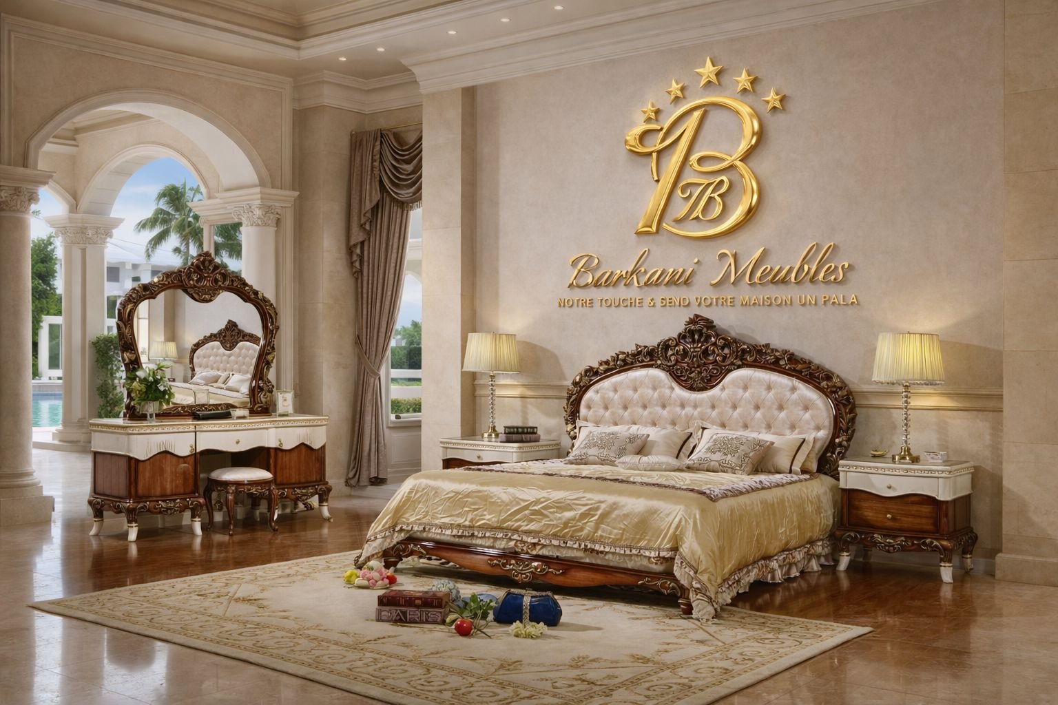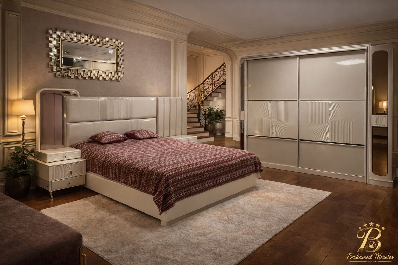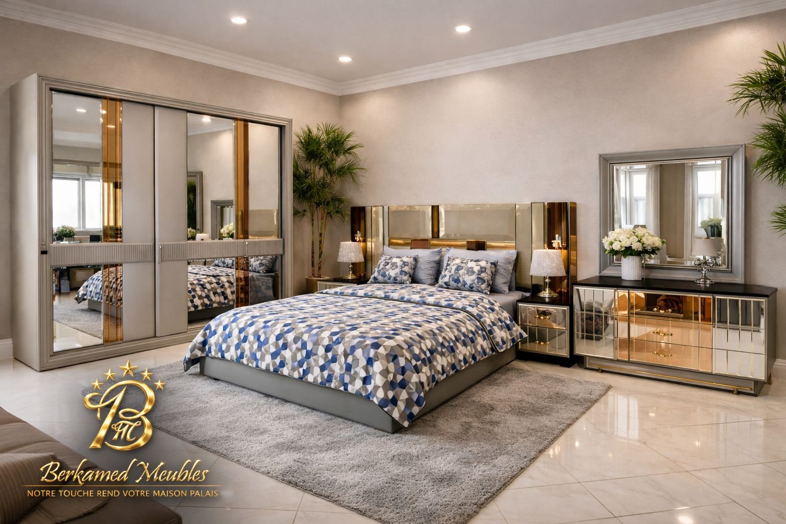 Cette chambre à coucher élégante de Barkani Meubles allie confort, qualité et design moderne.
